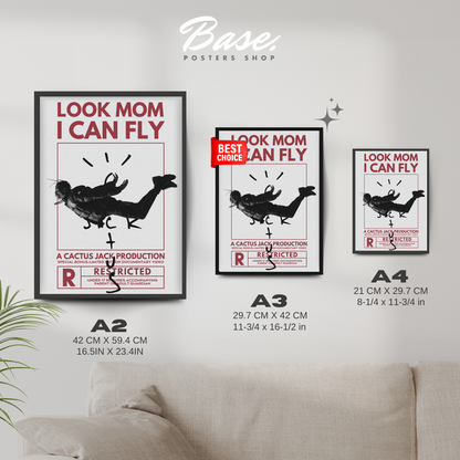 Transforma tu espacio con el cautivador LOOK MOM I CAN FLY TRAVIS SCOTT Póster. Esta pieza impresionante captura la esencia de uno de los artistas más influyentes de nuestro tiempo, convirtiéndolo en un must para cualquier fan o amante del arte.